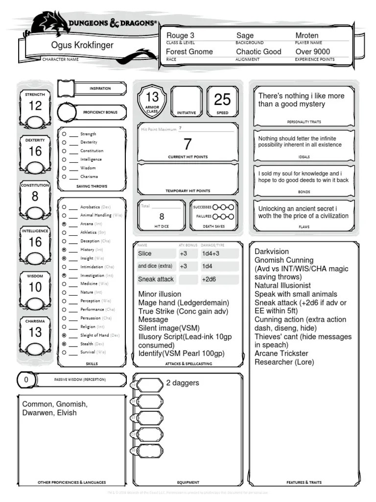 The Best Dnd Character Sheets Custom, Online, Printable, 51% Off